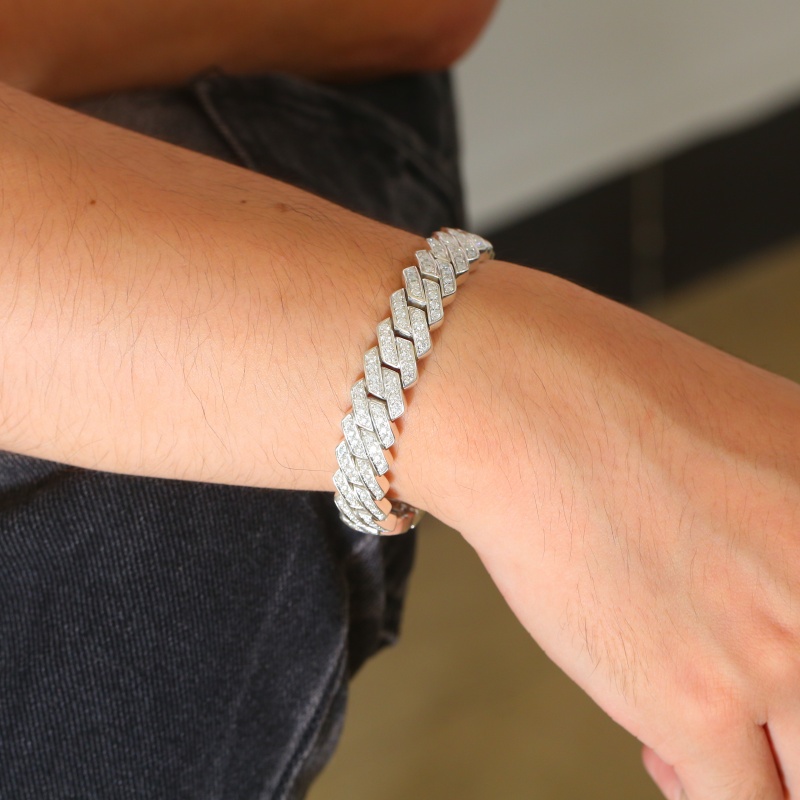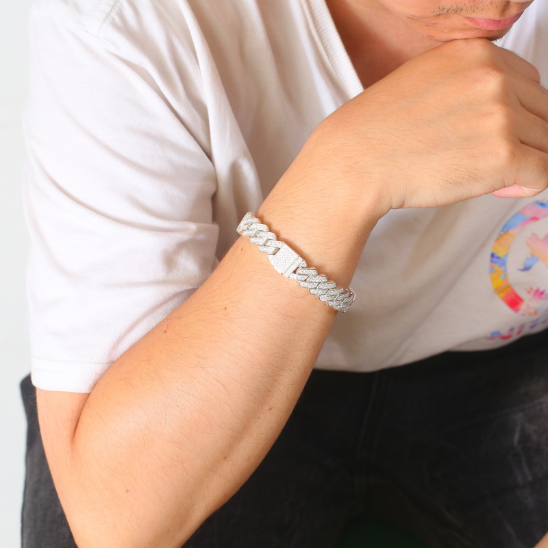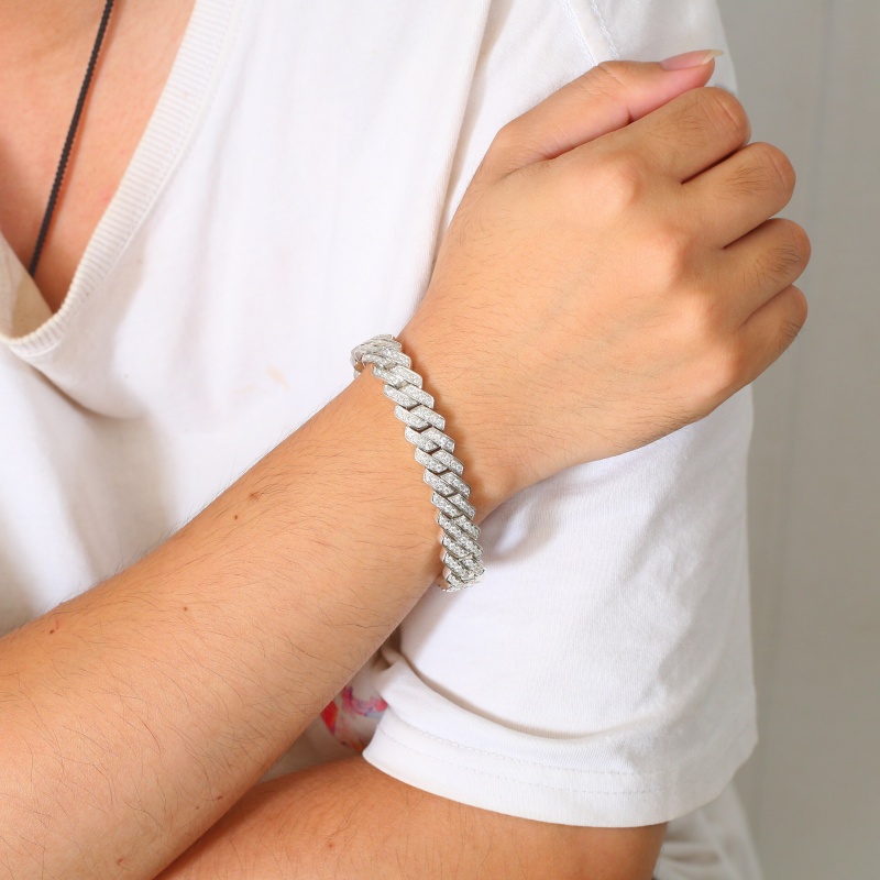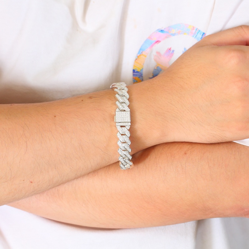 Благодаря роскошному внешнему виду, классической форме, изысканному мастерству, высококачественным материалам и диким характеристикам, этот серебряный браслет с кубинской цепочкой с бриллиантами является идеальным выбором для модных людей, чтобы улучшить свое личное обаяние.
